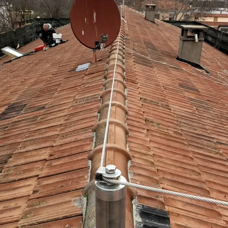 - Linee vita orizzontali: consentono movimenti sicuri lungo le coperture piane o inclinate.